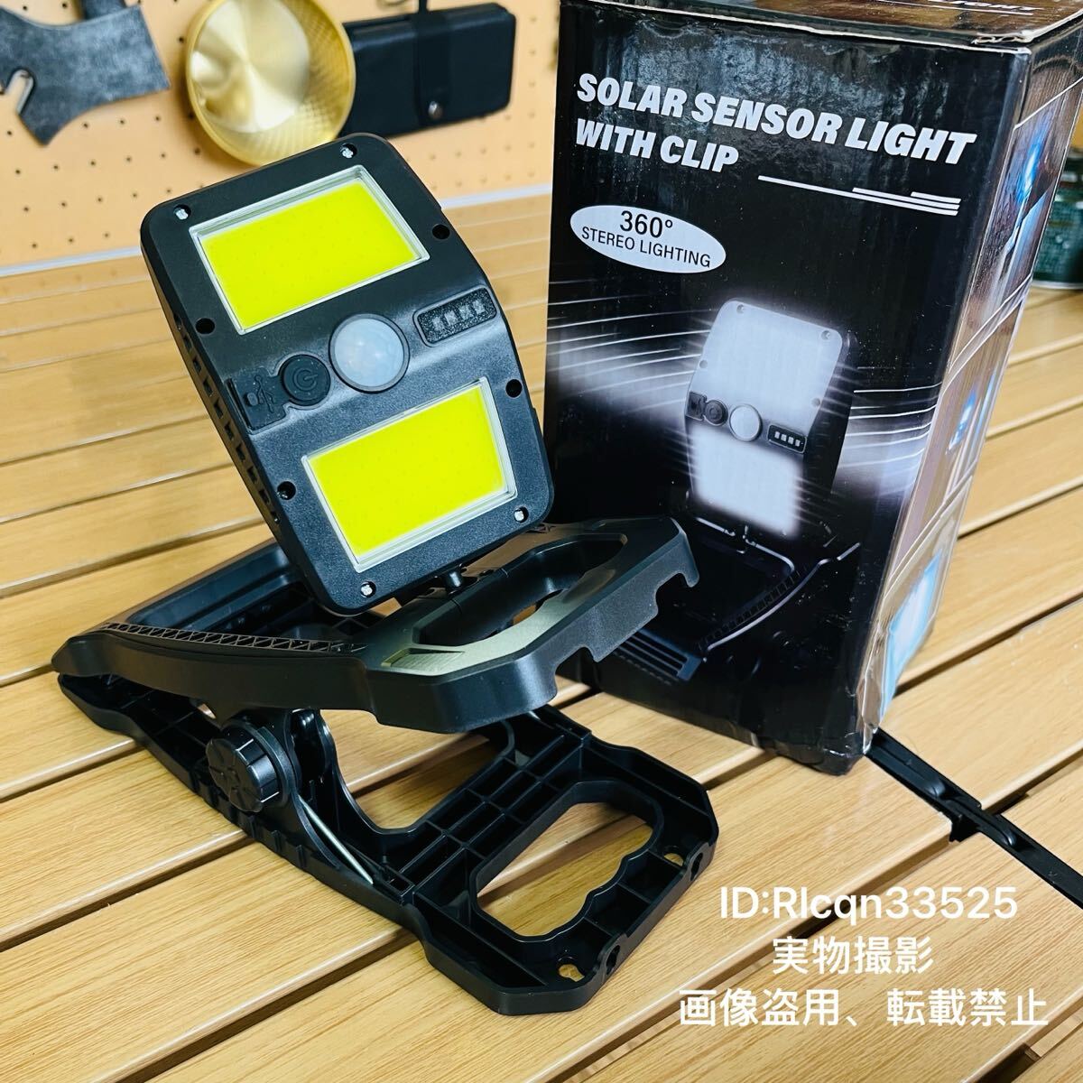 - 大型 ソーラーとUSB充電式 LEDクリップライト 360度回転 屋外 センサー搭載 防水仕様 照明 アウトドア キャップ 庭 駐車場