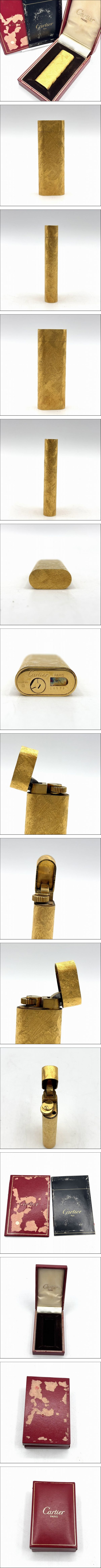 > 【え沖】Cartier カルティエ 五角形 ガスライター ゴールド 総柄 彫装飾 PLAQUE OR G 刻印 ローラー式 箱付き 火花確認済み MH234MGG92