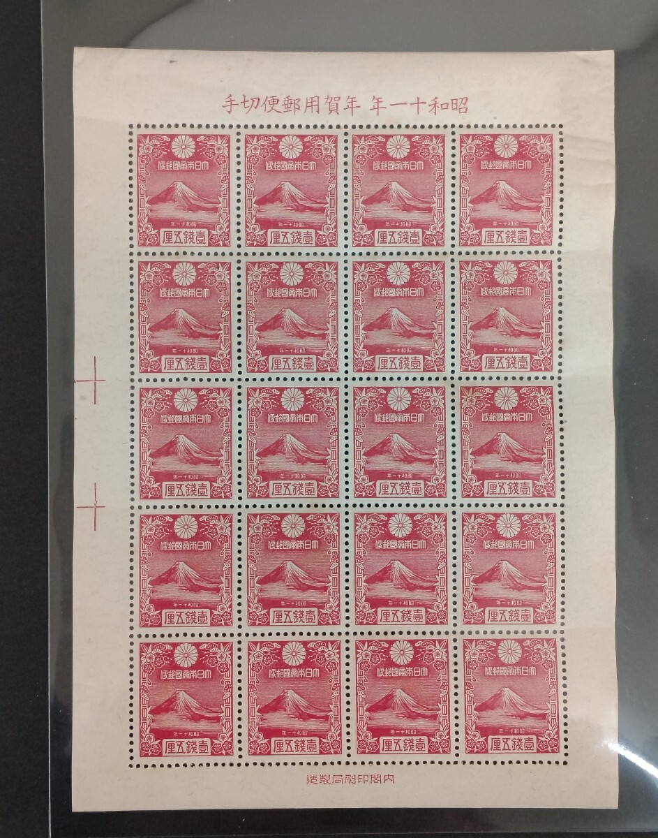 - ●● 日本切手 年賀切手 昭和十一年 富士山 シート ●●