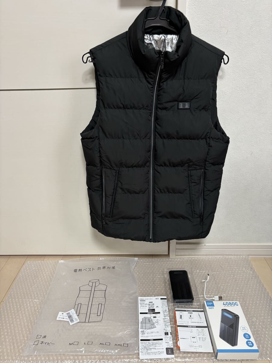 - 電熱ベスト ブラック ヒーターベスト ダウンベスト 電熱ベスト・防寒対策 バッテリー付き size:M