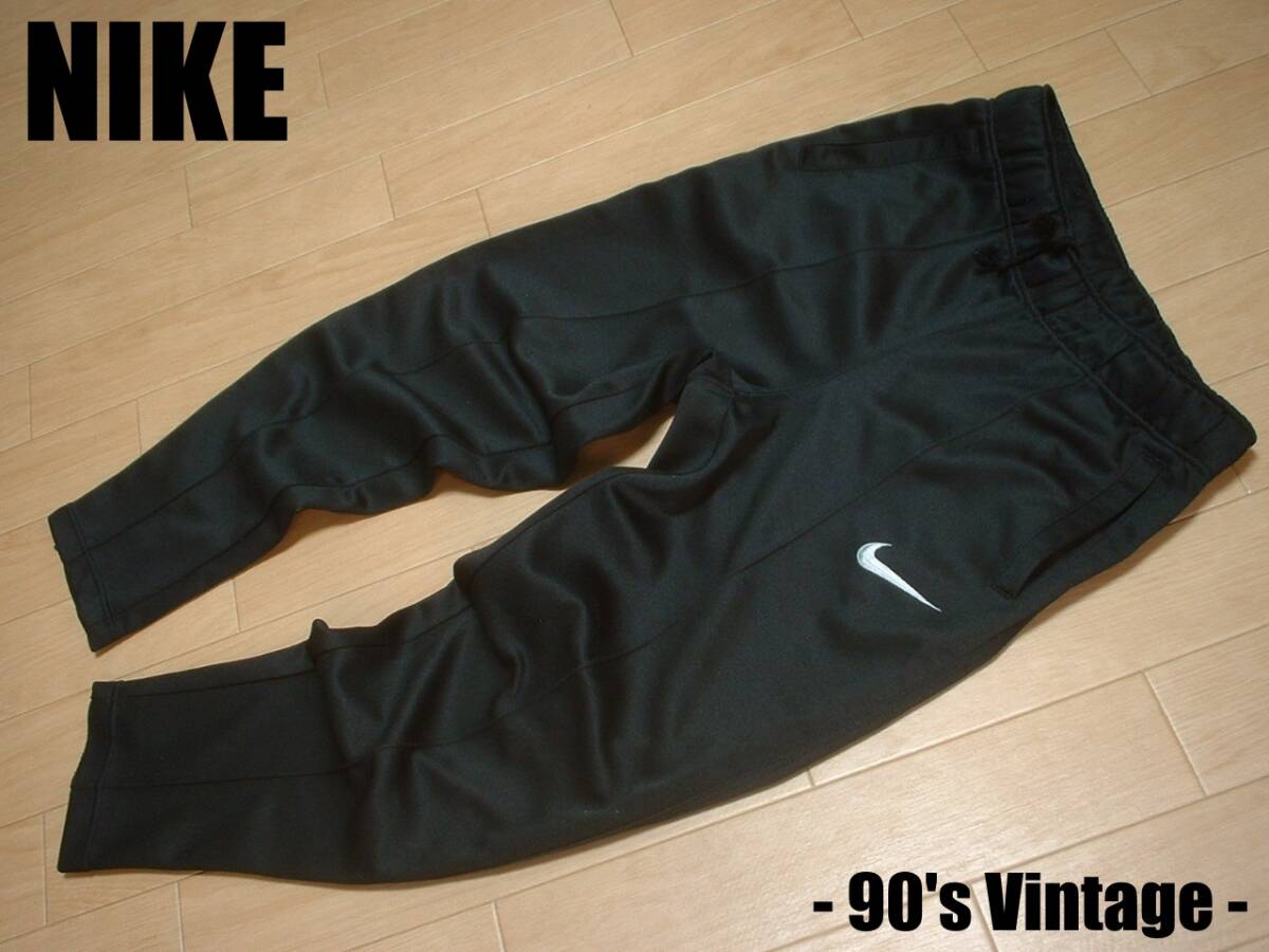 - 90sビンテージNIKE両面ワンポイントスウッシュ刺繍トラックパンツ美品XLブラック正規ナイキ黒ジャージパンツ裾ジップ付SWOOSHスウォッシュ