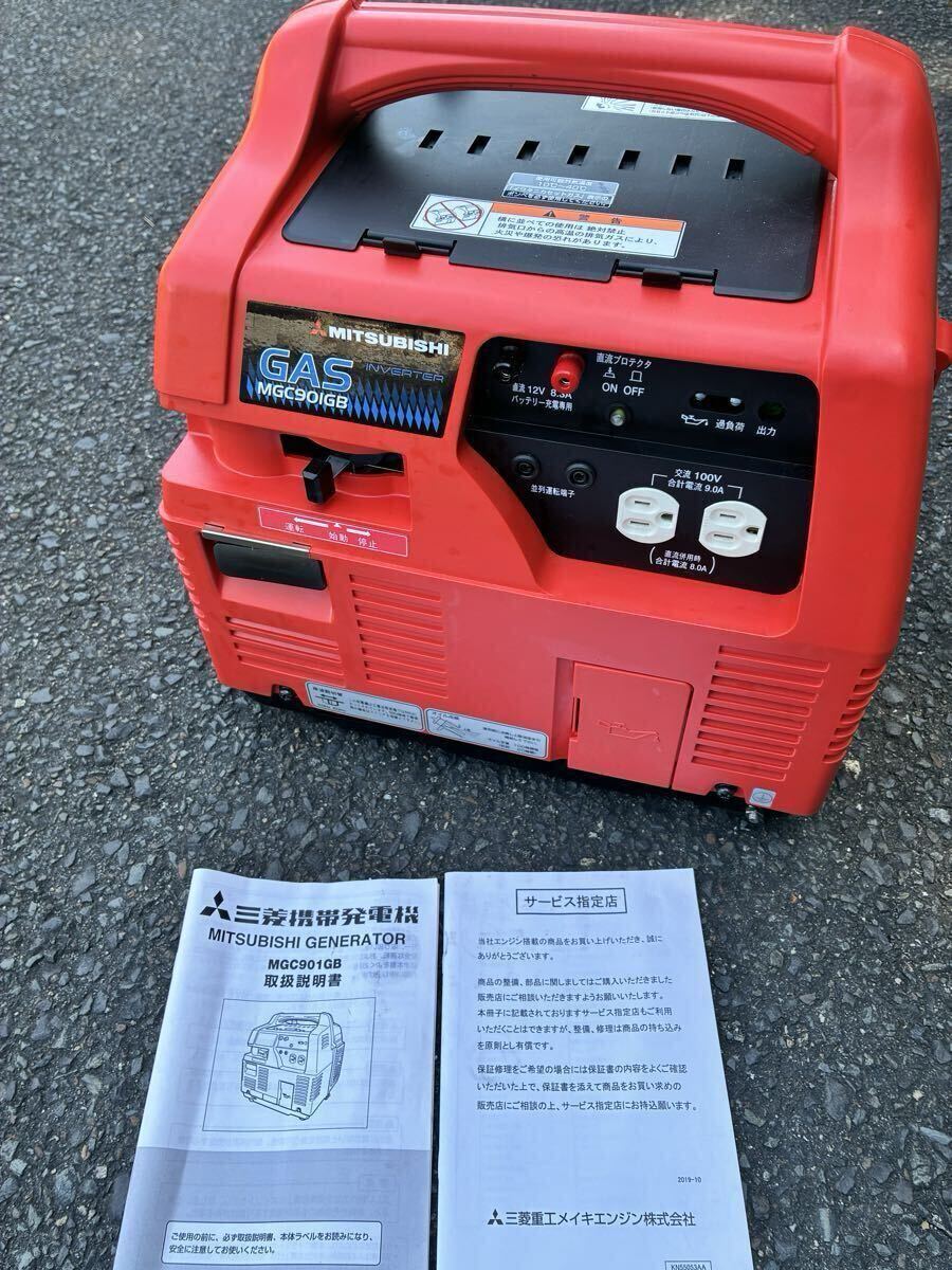 > ★ピカピカ★ Mitsubishi 三菱重工 三菱ポータブルカセットガス発電機 MGC901GB LPGボンベ 100V インバーター方式 災害 アウトドア取説付き