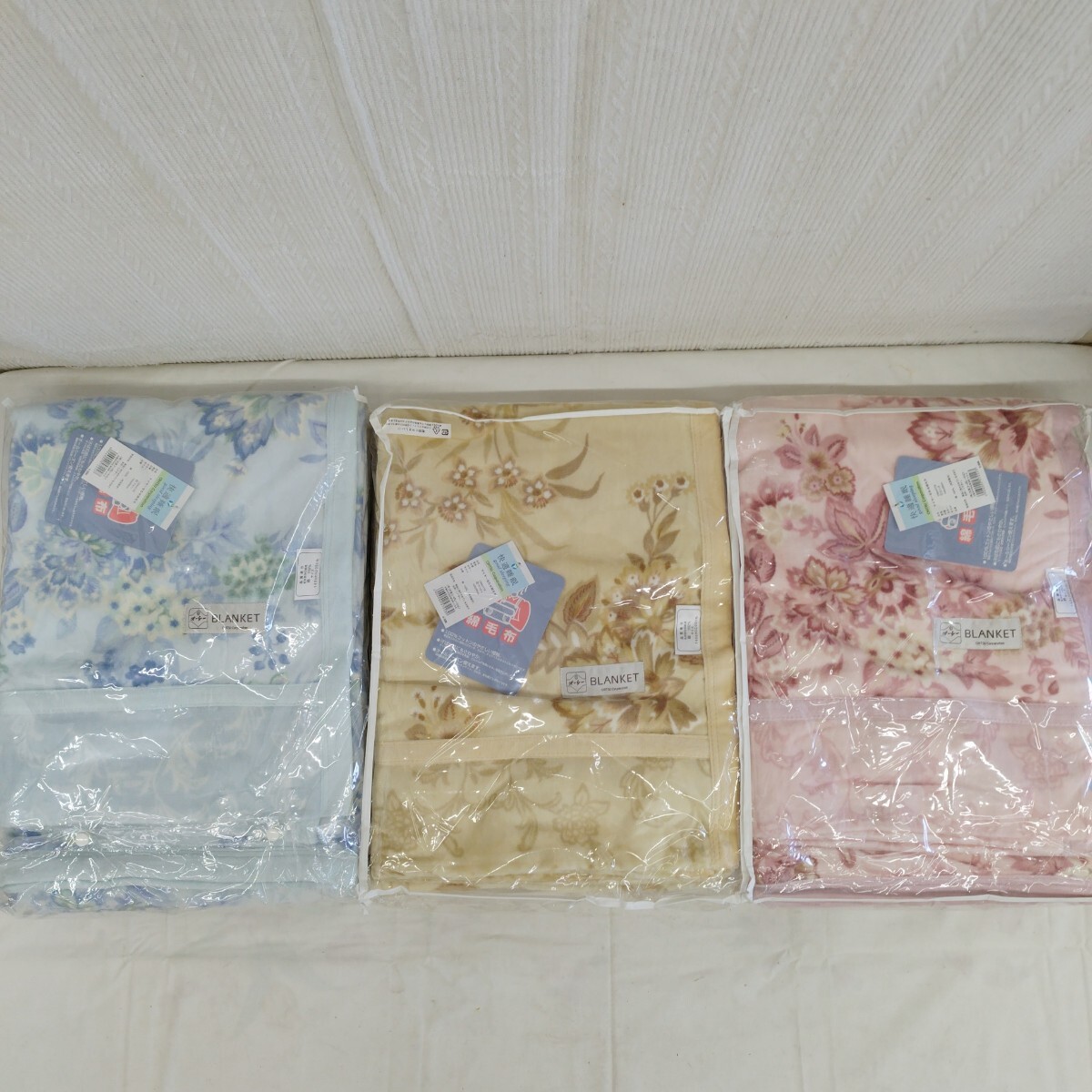 - 48b【1000円〜】未使用品 綿毛布 3点 マイヤー合わせ綿毛布 寝具 シングル 140×200