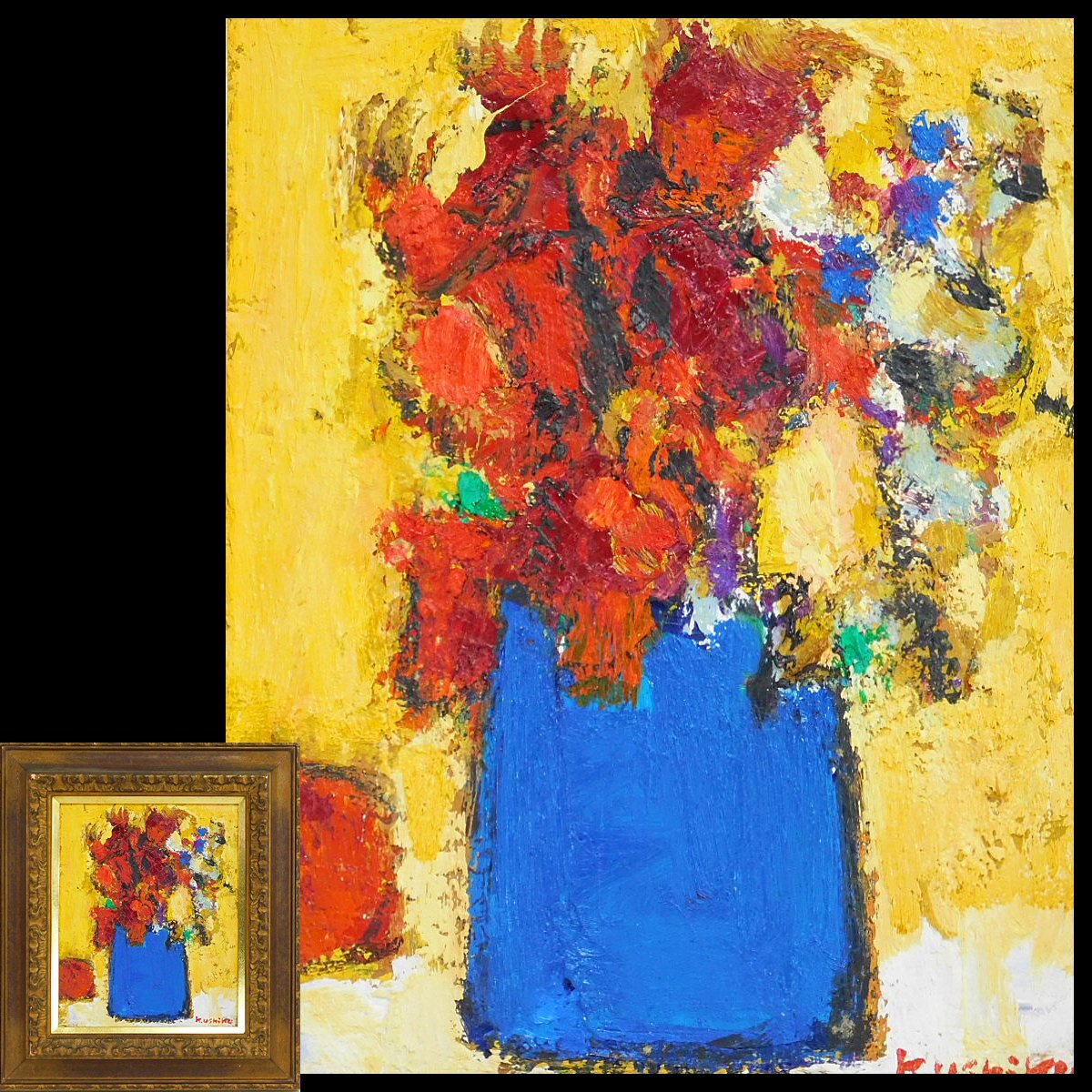 - 牛玖健治 花 F3 油彩 キャンバス 額装 1992~1994年制作 日本版画協会員 ブルックリン美術館蔵 師梅原龍三郎 n26041206