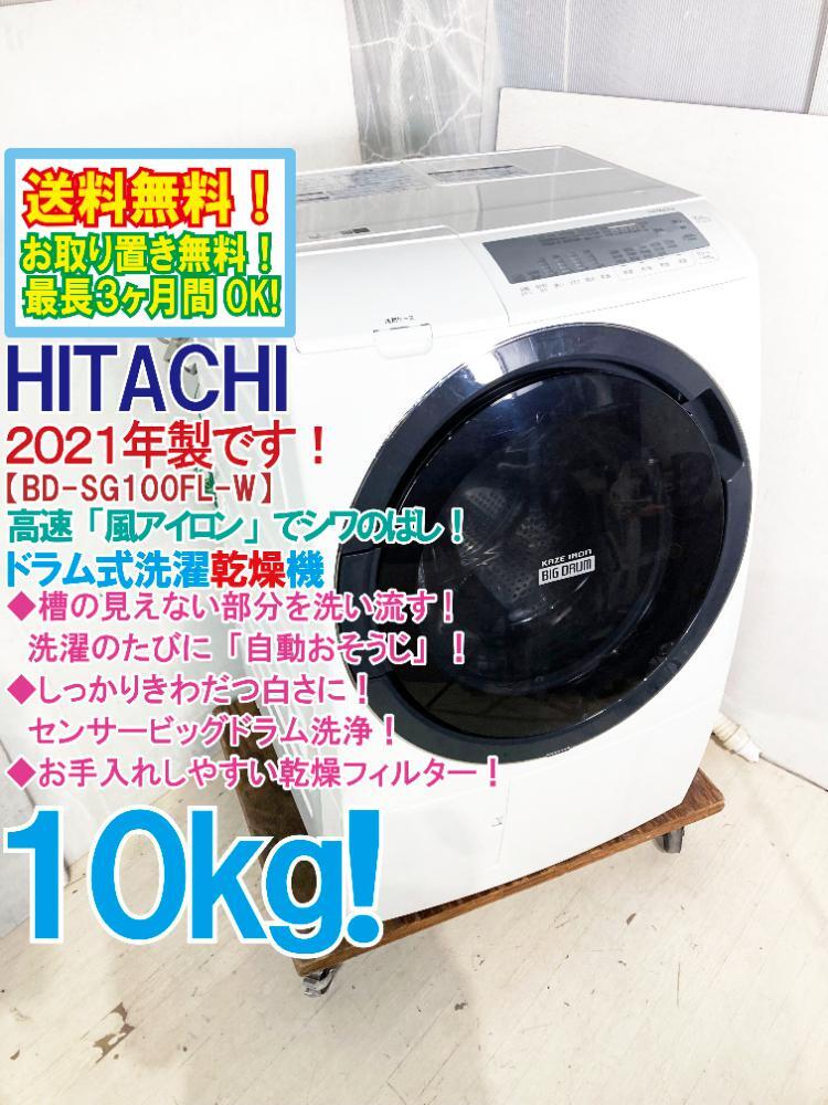 - 送料無料★2021年製★極上超美品 中古★日立 10kg 風アイロンでシワのばし!! ビッグドラム洗浄 ドラム式洗濯乾燥機【BD-SG100FL-W】GGEL