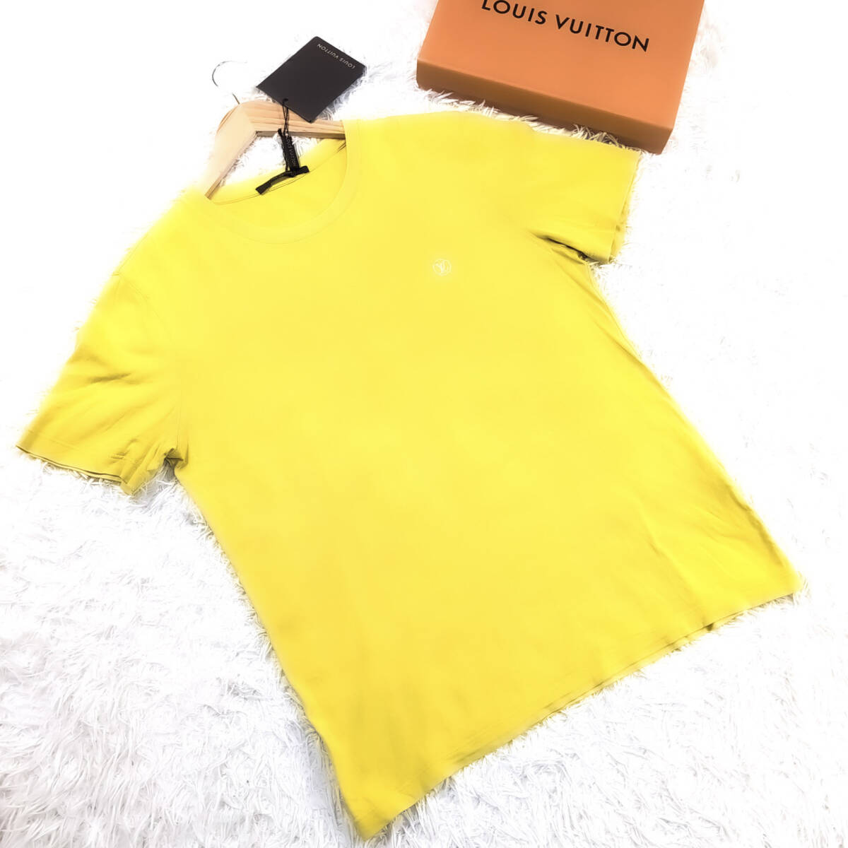 > 未使用級LL~L!LOUIS VUITTON半袖TシャツLVロゴ刺繍入りXL~Lマスタードイエロー黄色系 大きいサイズ爽快コットン綿地イタリア製ルイヴィトン