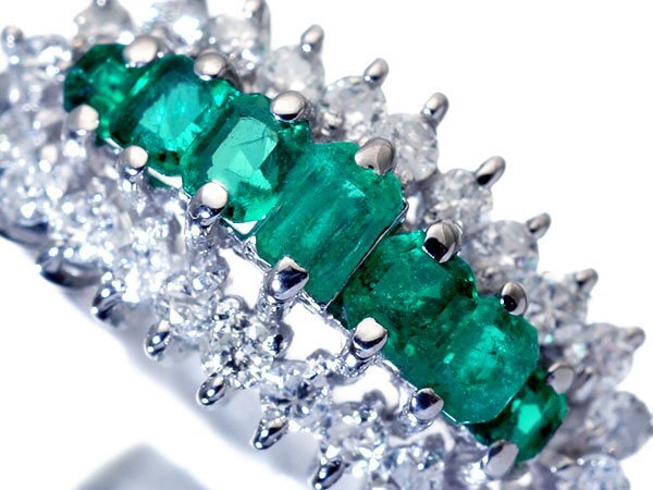 > 1円~【ジュエリー極】鮮やかエメラルドグリーン!良質天然エメラルド0.51ct&ダイヤモンド0.48ct 高級Pt900リング w6381uk【送料無料】