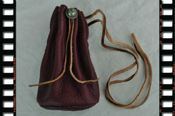 - カウスキン・メディスンポーチ・バーガンディサイズL AC新品牛革皺多い古いコンチョ付き