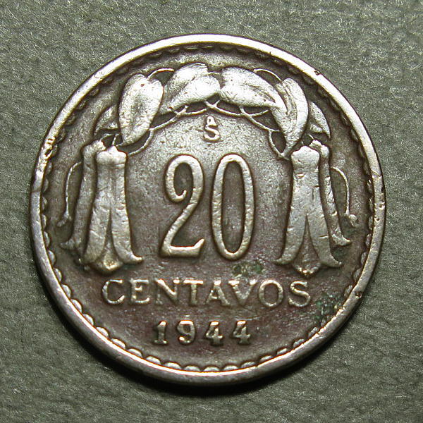 - チリ 1944年 昭和19年 50センタボ硬貨 ベルナルド・オイギンス 国花 コピウエの花 k0026