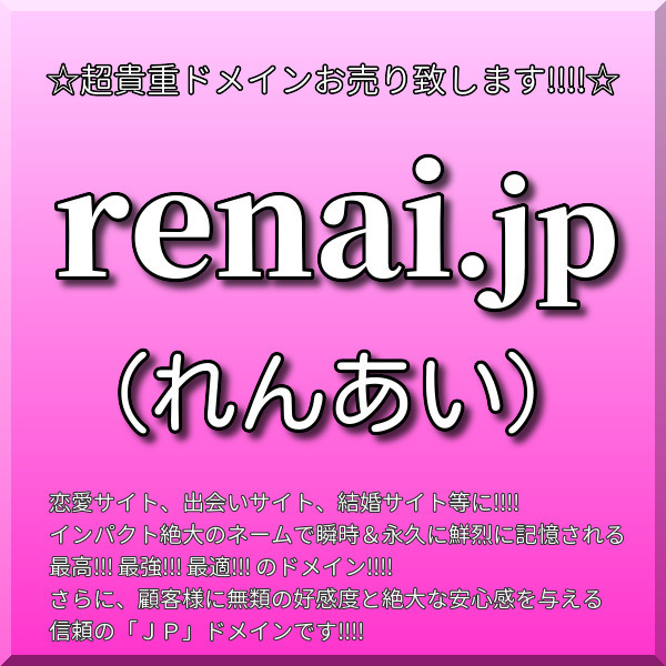 - 絶世無双!!!超究極ドメイン!!!【 renai.jp 】(れんあい、恋愛)インパクト最高峰です!!!