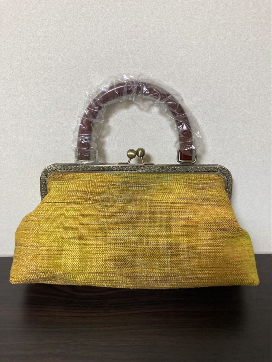- アンズルーム★2WAY★着物 帯★がま口 バッグ★ハンドバッグ★ショルダー★紬 黄