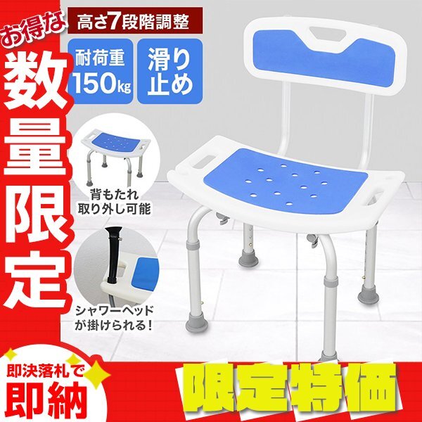 - 【限定セール】シャワーチェアー 介護用 お風呂椅子 背もたれ付き 脚ゴム シャワースツール 介護椅子 高さ調節 伸縮式 軽量 高齢者 車椅子