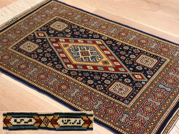 - 魁◆最高級トルコ絨毯 工房サイン有 最上質シルク100% 総手織り121万ノット 88×54㎝ 民族文メダリオン図柄 極上美品 最高級ペルシャ絨毯