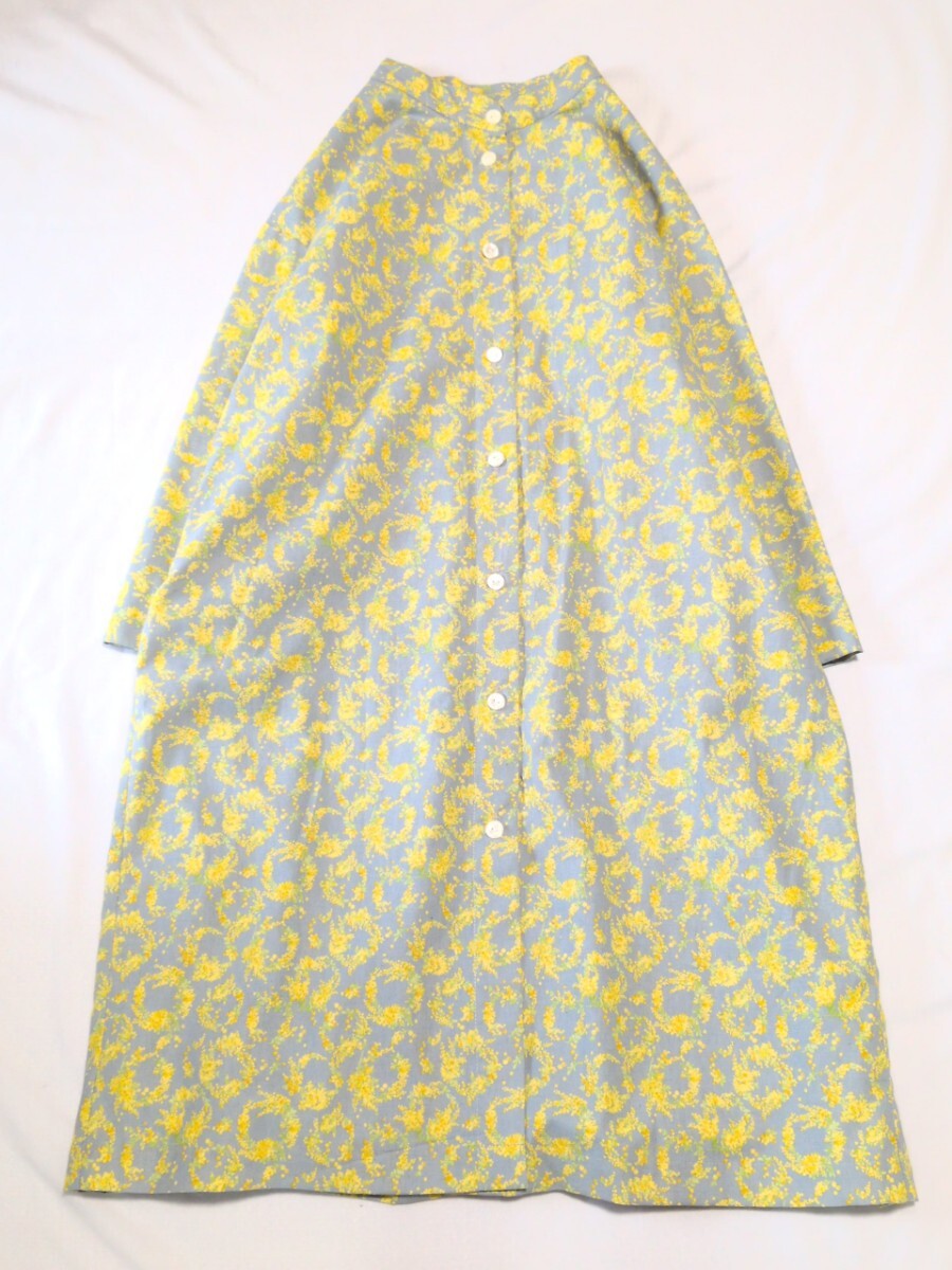 - **handmade** cottonリネン ミモザリース バンドカラー op ハンドメイド