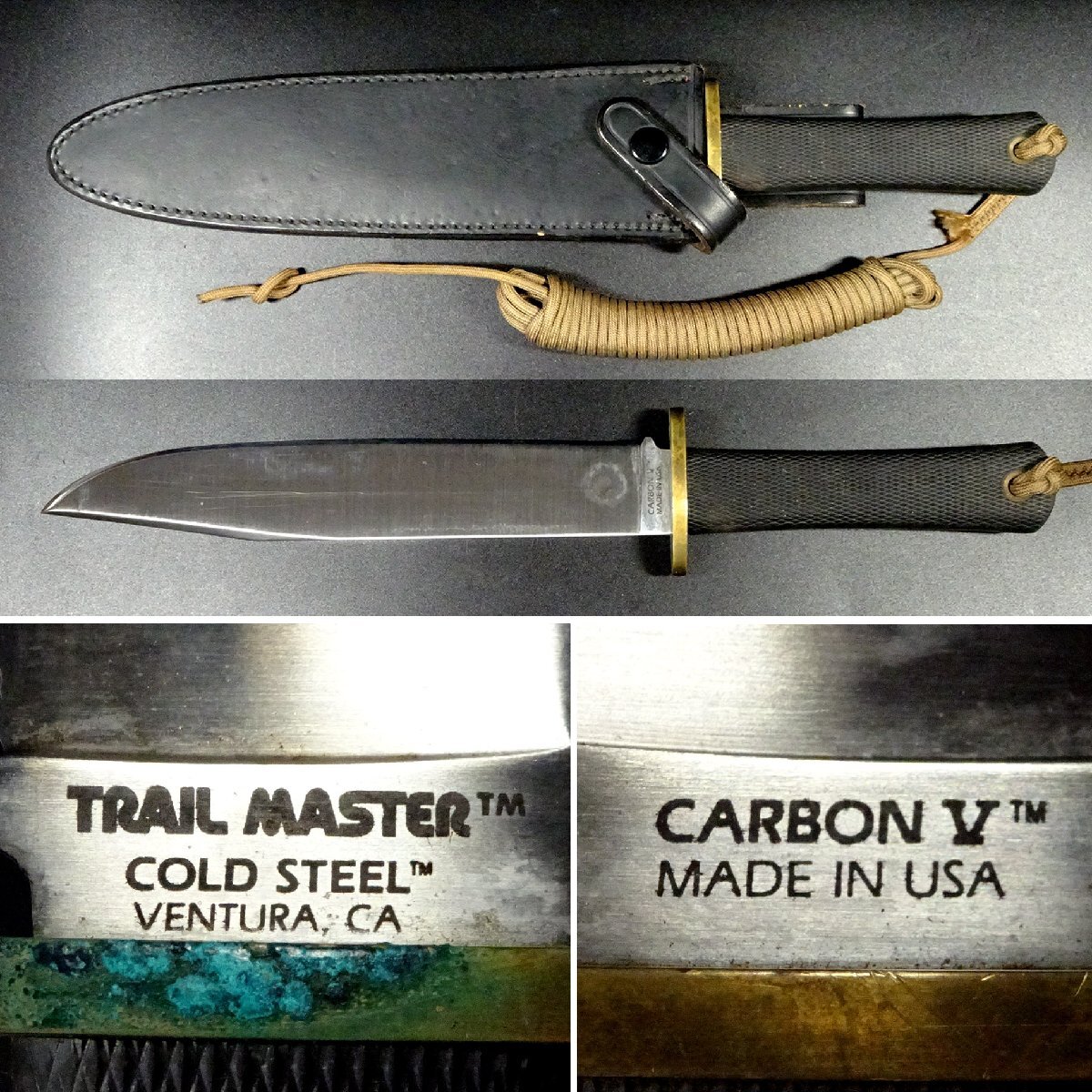 > 敬逢 秀逸 ハンティングナイフ アメリカ製 TRAIL MASTER COLD STEEL CARBON V サバイバルナイフ 革ケース付 2