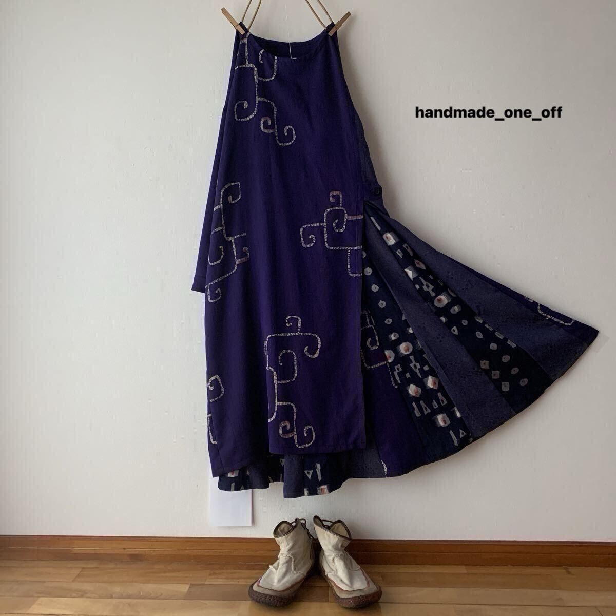 - 重ね着ワンピ●2枚セット●ワンピース&パッチスカート●着物リメイク●ハンドメイド●
