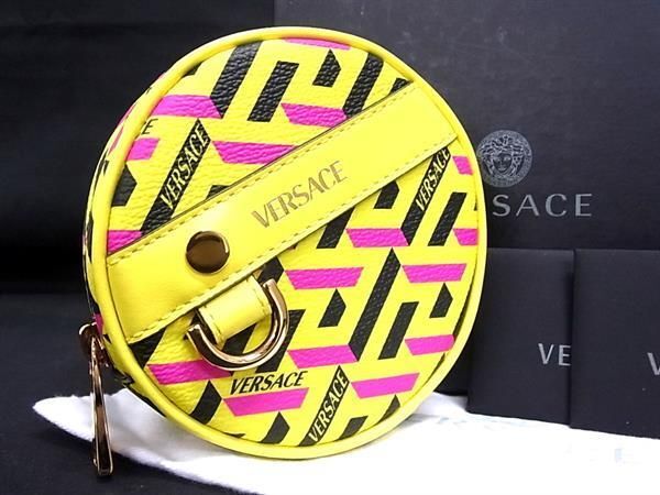 - 1円 ■極美品■ VERSACE ヴェルサーチ ラ グレカ PVC×レザー ポーチ マルチケース 小物入れ レディース メンズ イエロー系 AZ9795