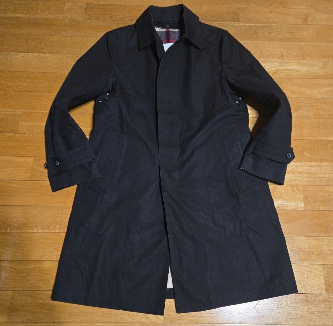 - 英国調逸品★マッキントッシュ 厳選高級『ギャバジンコットン×ウールライナー』 裏地英国チェック柄◎ブラック コート38(M位)