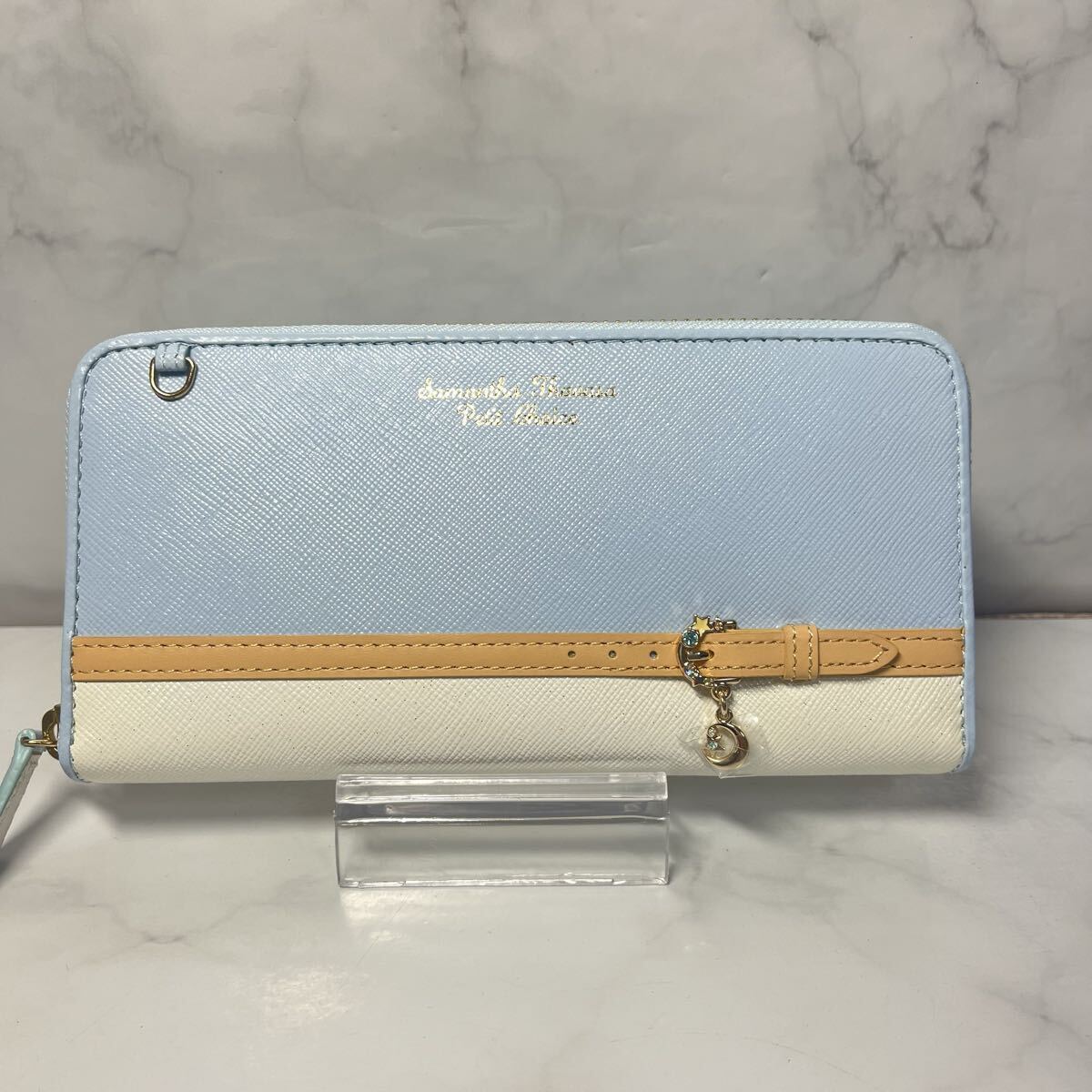 - 未使用 Samantha Thavasa Petit Choice サマンサタバサ プチチョイス ラウンドファスナー長財布 ライトブルー×ホワイト ベルト レザー