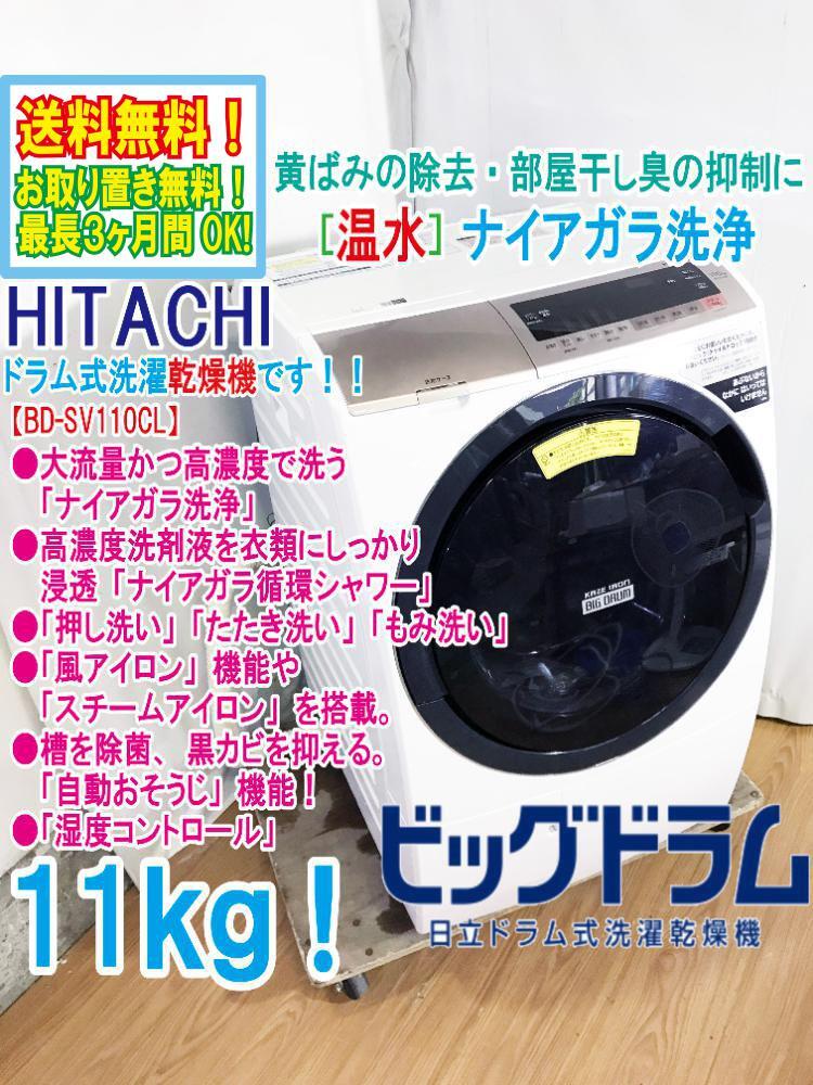 - 送料無料★極上超美品 中古★日立 11kg「温水ナイアガラ洗浄!!」風アイロン搭載!!ドラム式洗濯乾燥機【BD-SV110CL】GG49