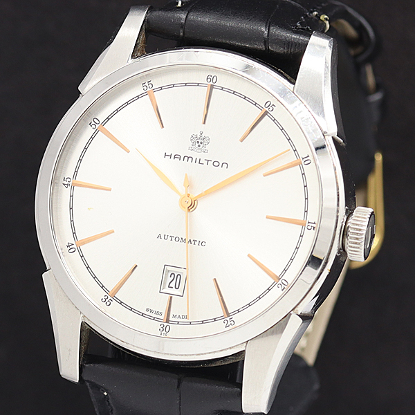 - 1円 稼働 良品 ハミルトン アメリカン クラシック H424150 AT/自動巻 シルバー文字盤 デイト 裏スケ メンズ腕時計 0058300 4ERT NKJ