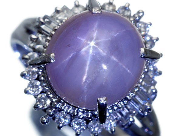 - 1円~【ジュエリー極】超希少!大粒良質非加熱パープルスターサファイア5.61ct&ダイヤ0.43ct 高級Pt900リング ソ付 k1659uz【送料無料】