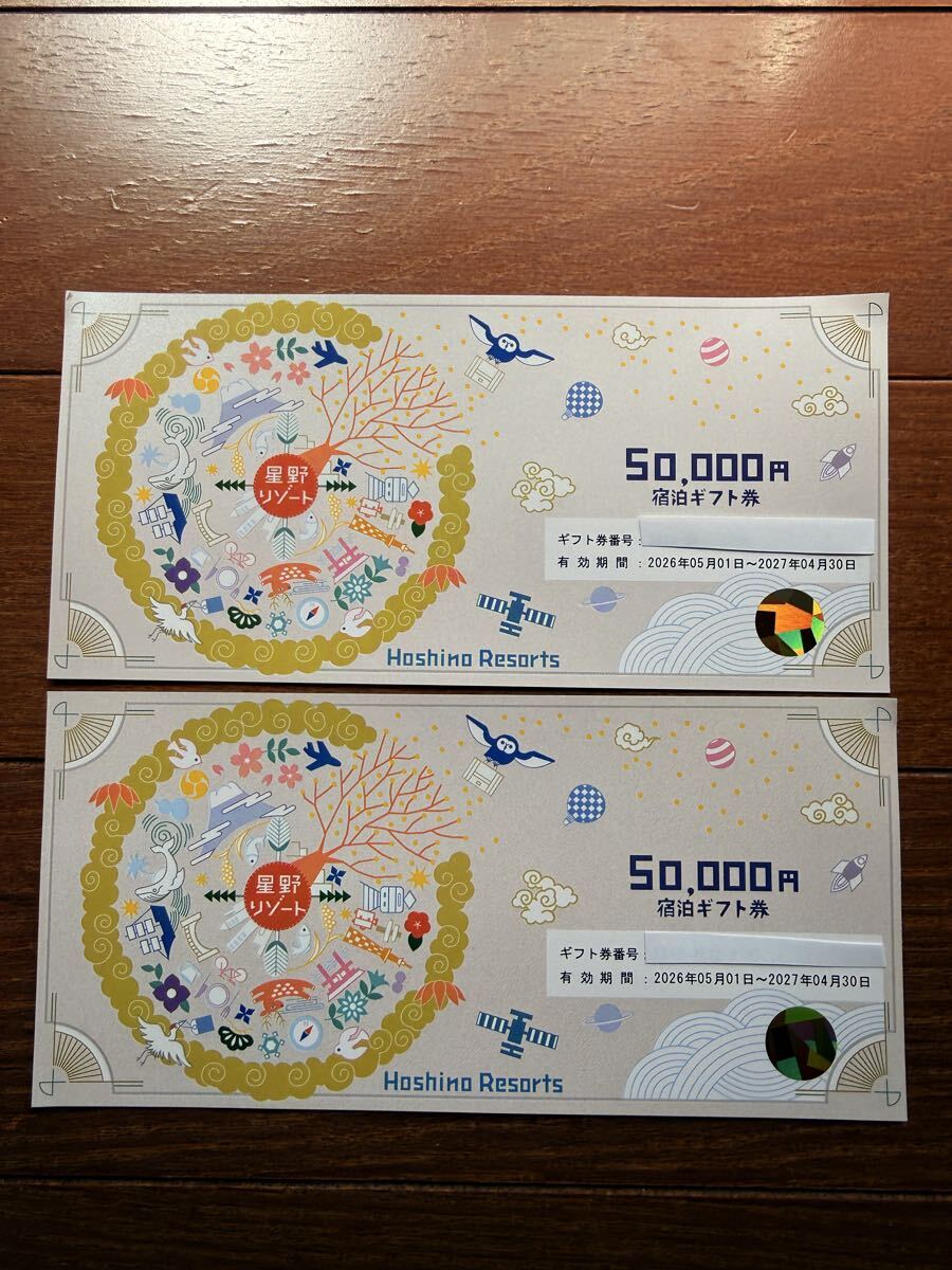 - 星野リゾート 宿泊ギフト券 50,000円×2枚 10万円分 2027年4月30日まで