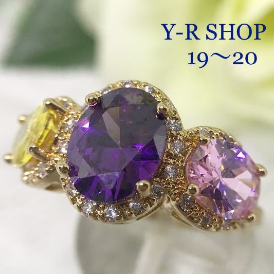 > ★19号20号★アメジストとトパーズとゴージャスリング★レディース指輪フリーサイズカラーストーンゴールドピンクトパーズ新品cz