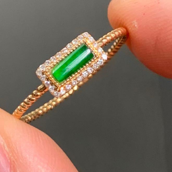 - 本翡翠リング 指輪 k18 ダイヤ 高級品