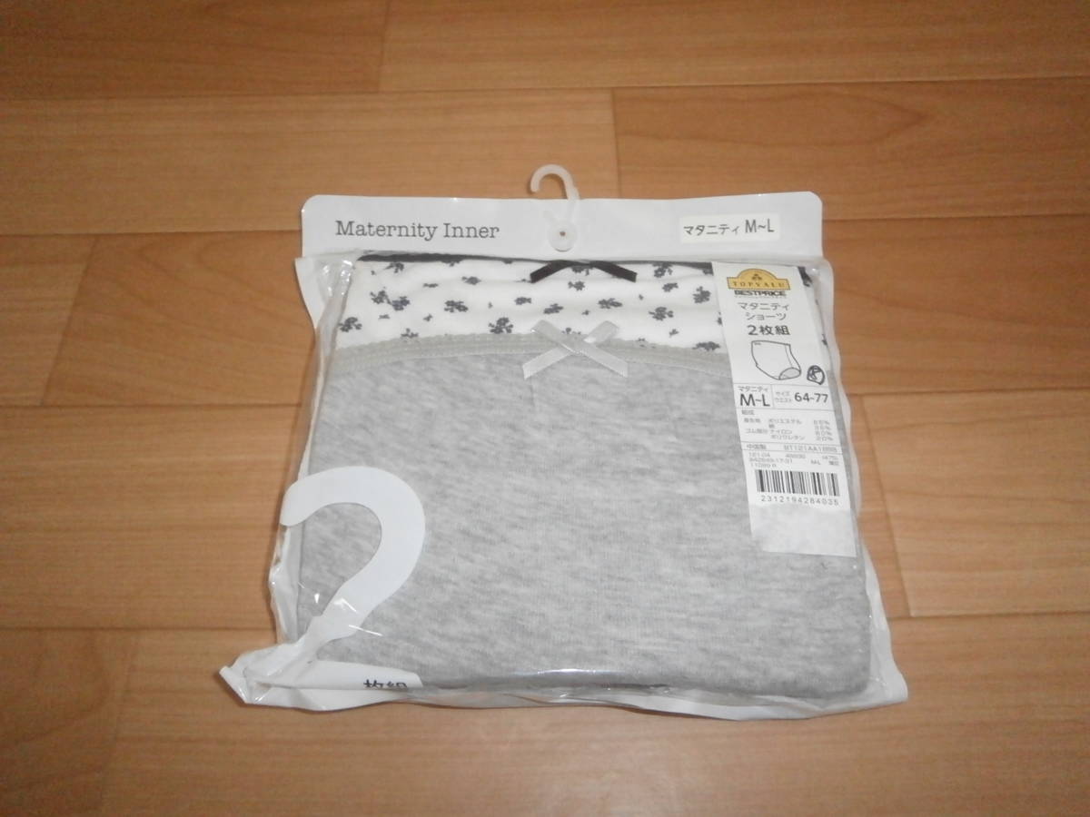 - 即決★新品★トップバリュ★マタニティショーツ2枚組★サイズM~L★⑧★白地×紺花柄 グレー★薄灰★妊娠出産妊婦パンツ妊娠初期から臨月