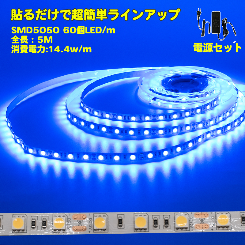 - 電源セット LEDテープライト 5m 青 電球色2700K LEDテープ SMD5050 正面発光 足元灯 棚下照明 バーライト DIY自作