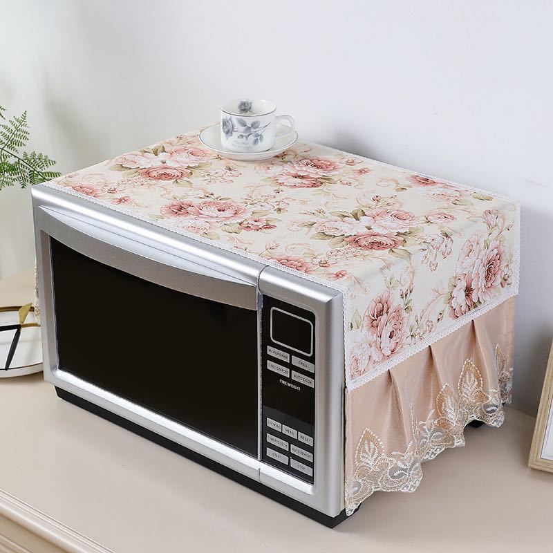 - 新発売 電子レンジカバー マルチカバー フリル付き レース 刺繍 花柄 茶色 テーブルクロス 長方形