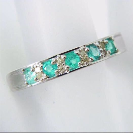 - 【希少】蛍光ネオン強い 天然パライバトルマリン 天然ダイヤモンド 指輪 エタニティリング ハーフエタニティリング 18号 鑑定書付き