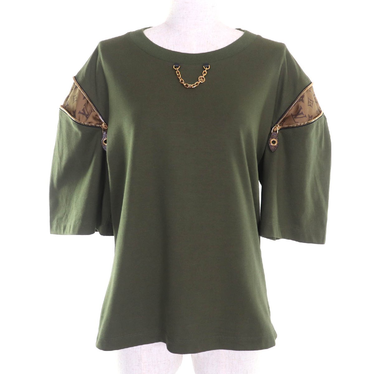 > 極美品★LOUIS VUITTON ルイヴィトン 23AW コットン100% モノグラム チェーン装飾 ZIPデザイン 半袖Tシャツ カーキ XL 伊製 正規品