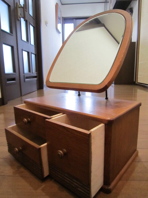 - 骨董 アンティーク レトロ 鏡付 和家具 宝石箱 化粧箱 ドレッサー 姿鏡 民芸家具 アクセサリー ケース 化粧台 コスメボックス ★404