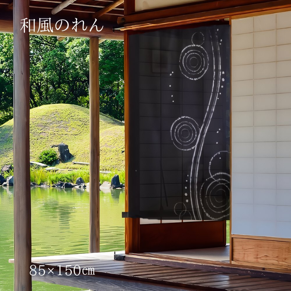 > のれん 暖簾 おしゃれ 間仕切りカーテン 目隠し 和風 和柄 和モダン 和風モダン 和風暖簾 水紋 85×150cm