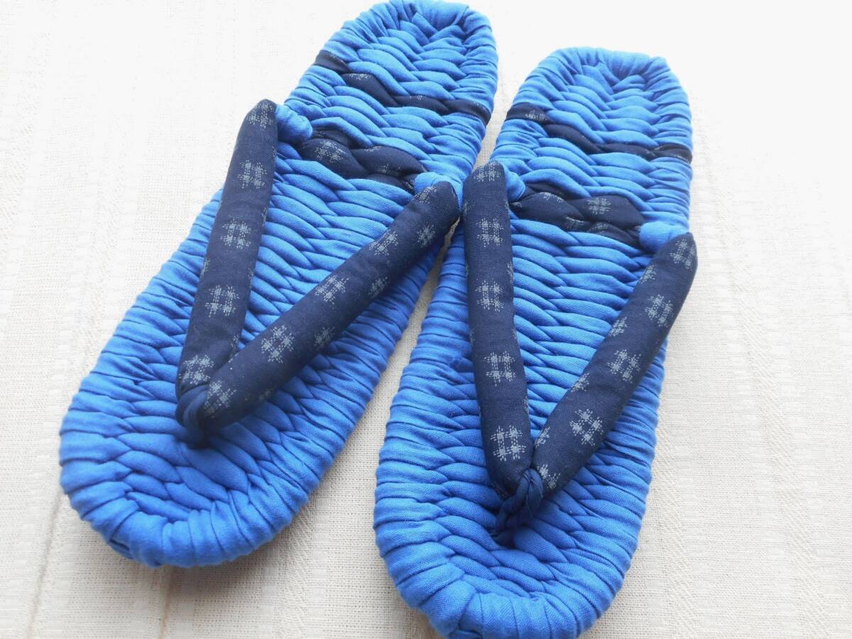 - 26cm◆布ぞうり◆手作り室内履き◆青×絣柄