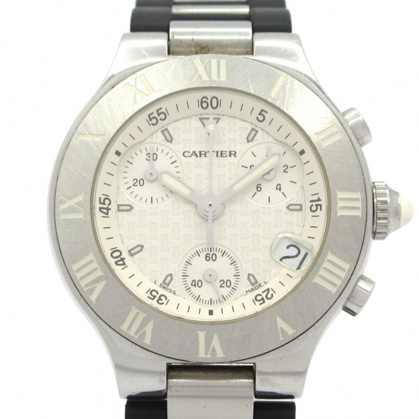> Cartier(カルティエ) 腕時計 マスト21クロノスカフSM W10197U2 レディース SS/ラバーベルト(ブラック)/クロノグラフ 白