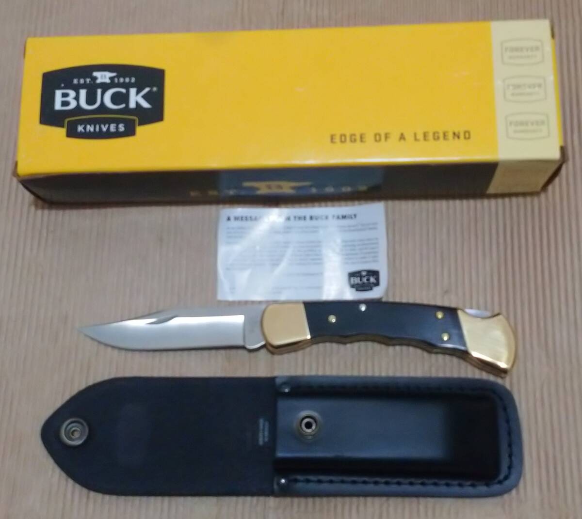 - バックフォールディングハンターナイフ フィンガーグルーブ 110BRSFG 2024年製 未使用品 箱、書類、レザーシース付き