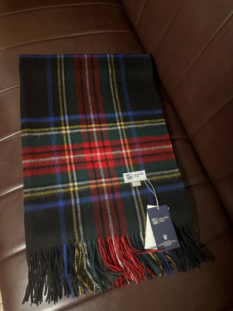 - 男女兼用ジョンストンズ 大判 ストール マフラー カシミア ブラックスチュワート