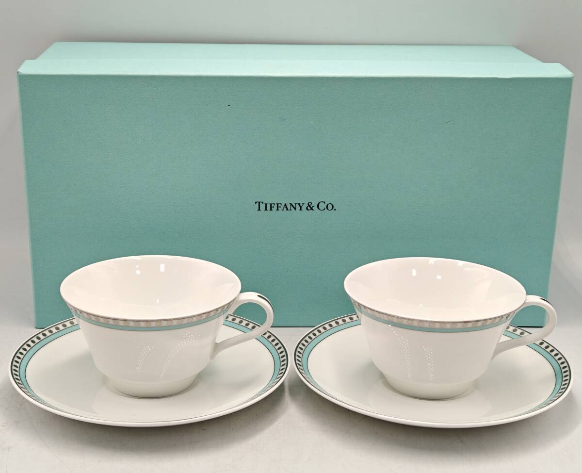 - ティファニー TIFFANY&Co ペアカップ プラチナ ブルー バンド カップアンドソーサー