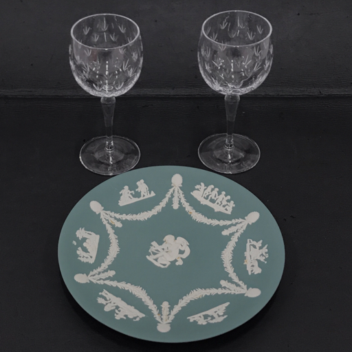 - 1円 ティファニー ペア ワイングラス / ウェッジウッド ジャスパー プレート ブランド食器 計3点 セット B2246