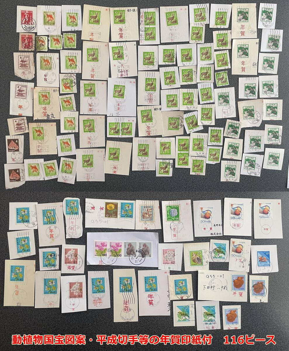 - 【使用済・年賀印ロット】動植物国宝平成紙付116ピース
