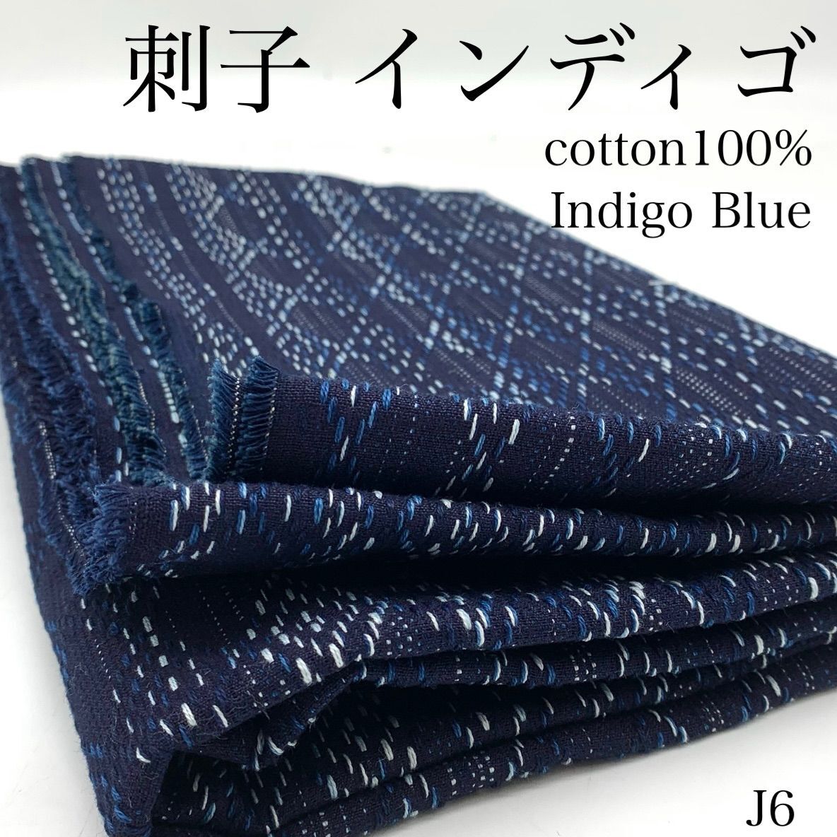 > J6 インディゴ刺子 3m インディゴブルー 綿100% 個性的 ダイヤ型 生地 ステッチ 日本製 国産 岡山県産 ハンドメイド