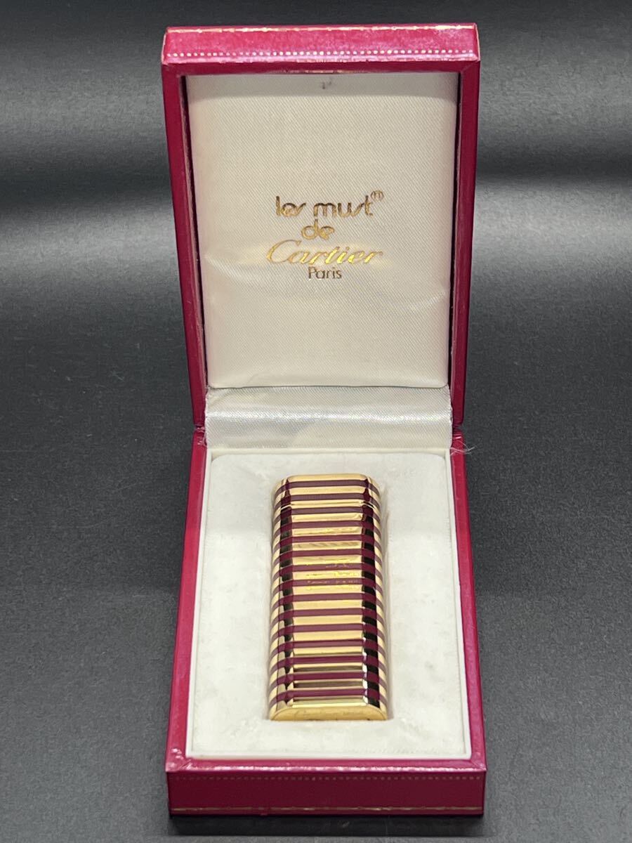 - Cartier カルティエ ガスライター オーバル ボルドー ゴールドカラー 箱付き