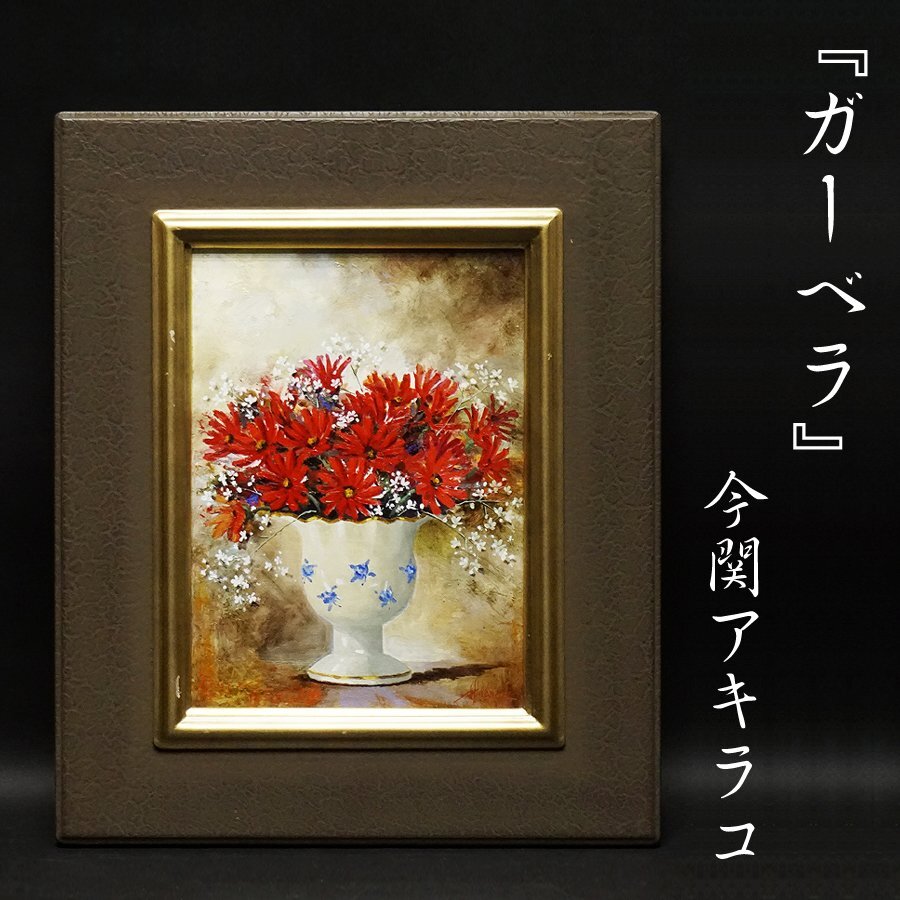 - 今関アキラコ 今関彰子『ガーベラ』4号 油彩 油絵 直筆 静物画 裏書サイン 絵画 額装 美術 芸術 アート 古美術品 真作保証品