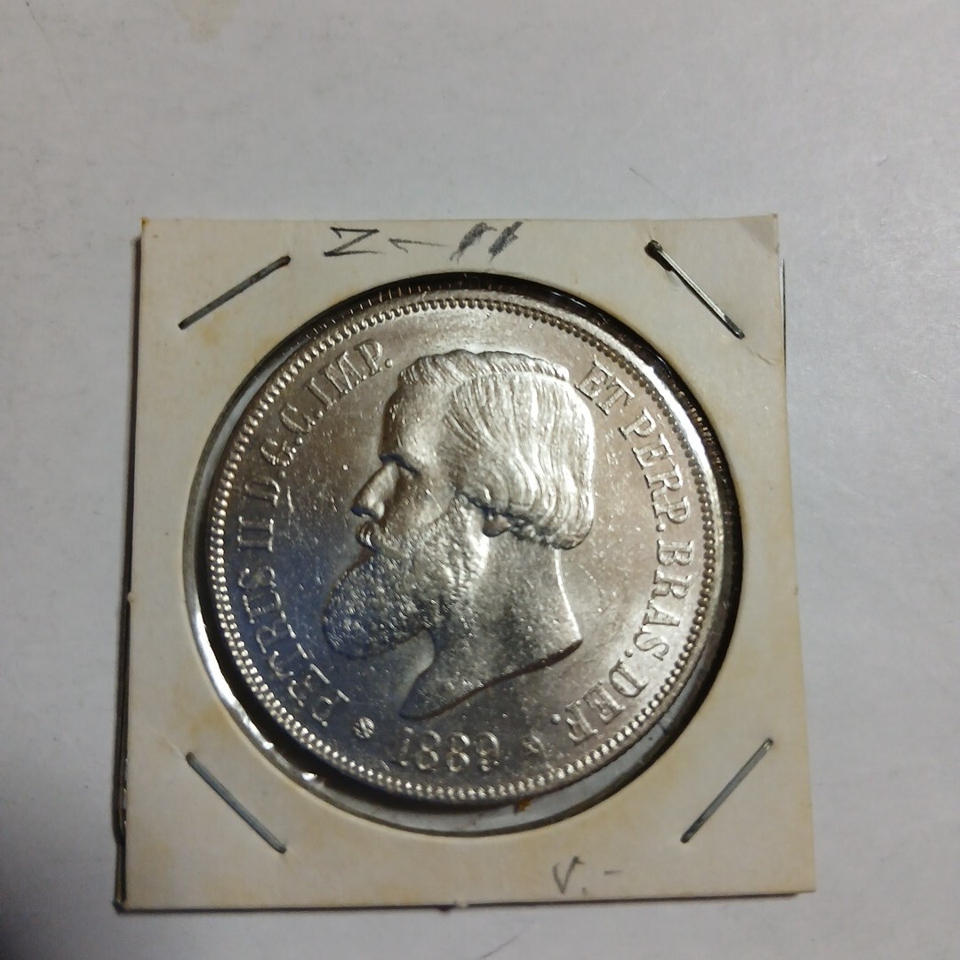 - ブラジル 1889年 2000レイス ペドロ2世 銀貨 未使用~完未