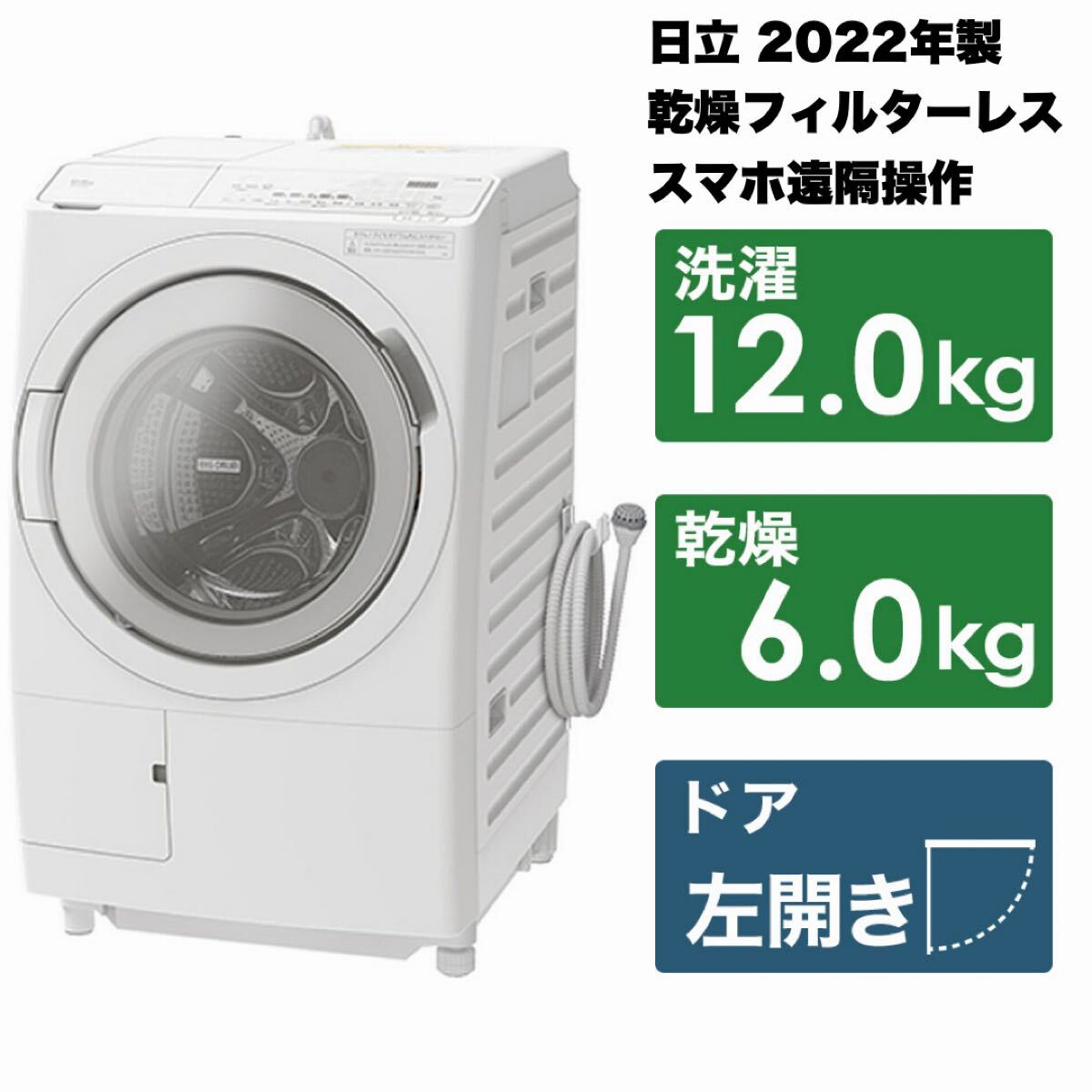 - 【超美品】日立★2022年製★12.0/6.0kgドラム式洗濯乾燥機★洗濯機★ヒーター乾燥★乾燥フィルターレス★ホワイト★BD-SX120HL-W★12キロ