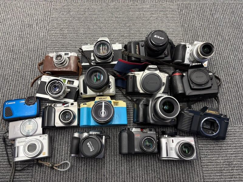 - Z-52252【ジャンク品】1円スタート カメラおまとめ18点 一眼レス/デジカメ/フィルムカメラ (ニコン/キャノンオリンパス/ミノルタなど)