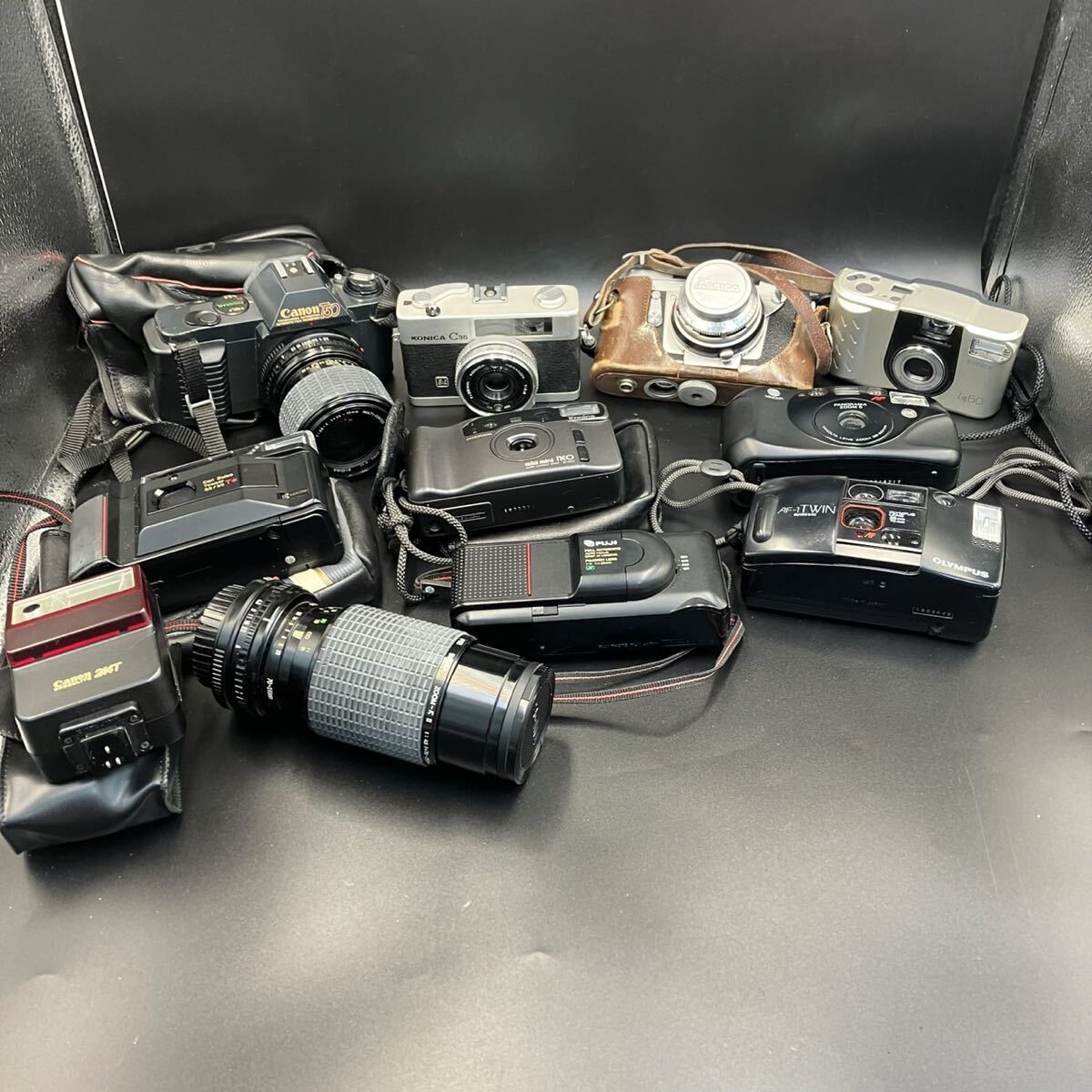 - 1円スタート フィルムカメラ まとめ ストロボ レンズ コニカ Canon 動作未確認 現状品 N0419ウ